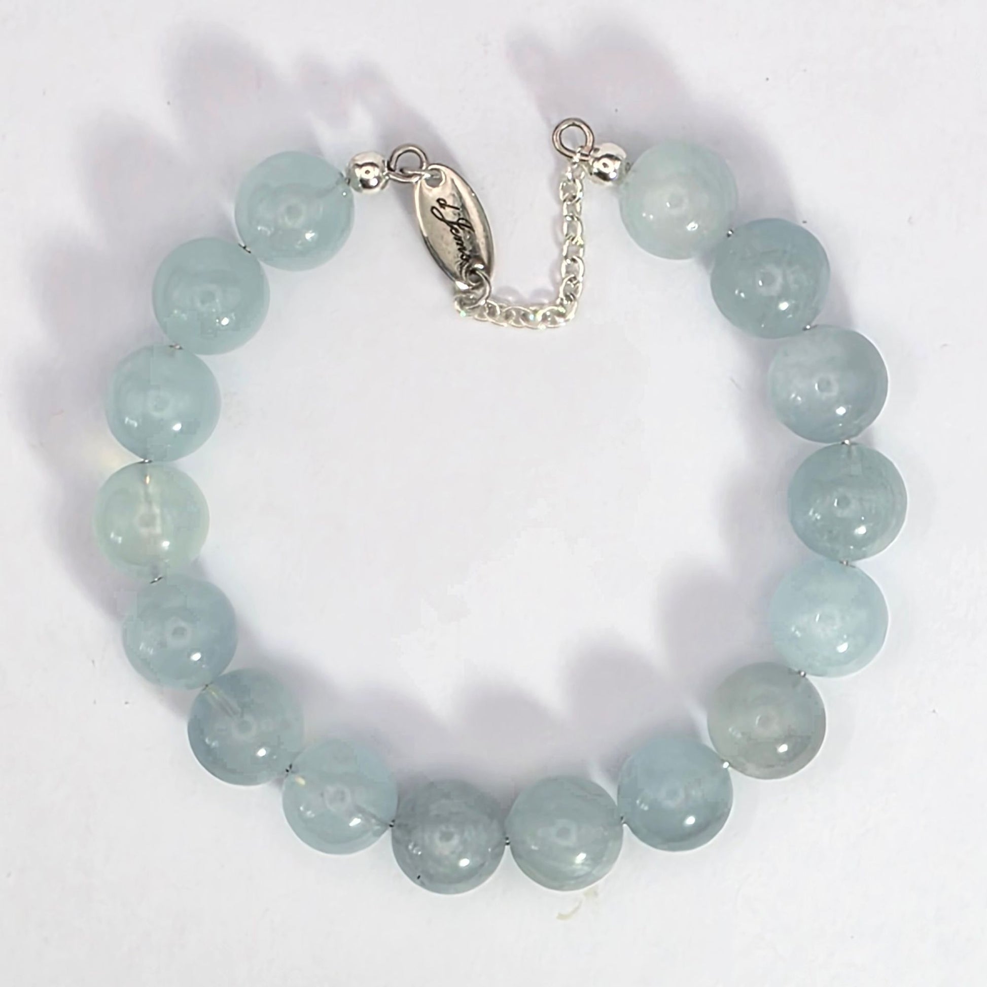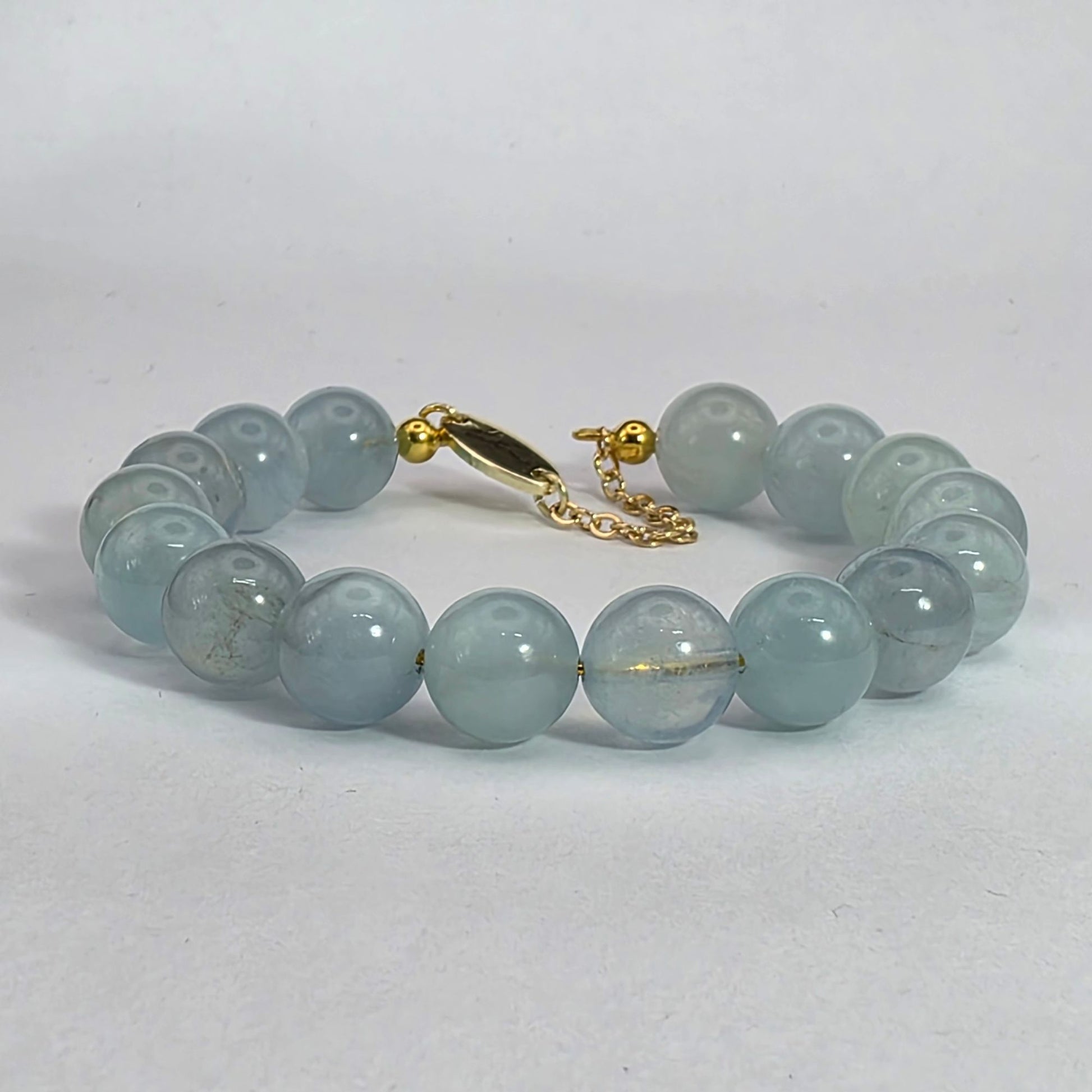 Embrace the serene energy of aquamarine with these stunning 10mm bracelets. Each bead showcases the crystal's signature calming blue-green hues, believed to promote tranquility and clear communication. Perfect for daily wear or meaningful gifting, these bracelets combine natural beauty with timeless elegance. Whether you're drawn to gemstones for their aesthetic appeal or their metaphysical properties, this piece offers versatile style that complements any wardrobe. Discover the peaceful presence of aquamarine today.