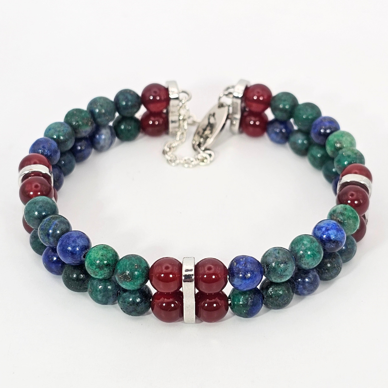 Azurite & Carnelian Double 6mm Strand Bracelet- Silver