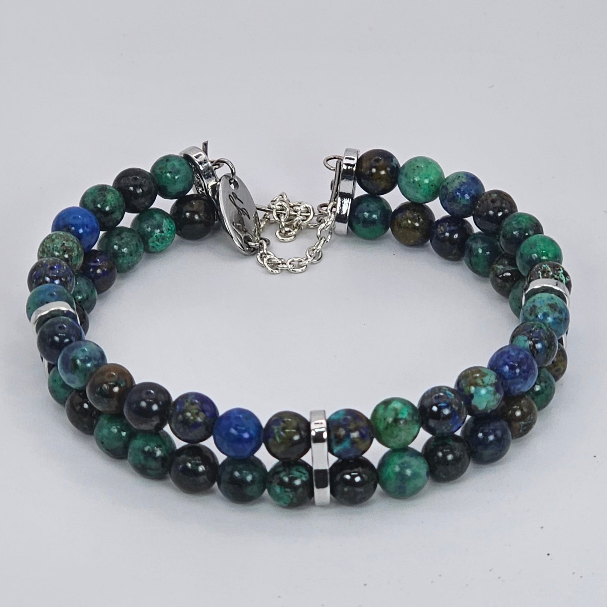 Elevate your intuition and clarity with our 6mm Azurite Double Strand Bracelet. Known as the Stone of Insight, azurite enhances focus, inner wisdom, and creativity. Its deep blue tones and double-strand design create a striking, sophisticated piece that inspires confidence and calm.
