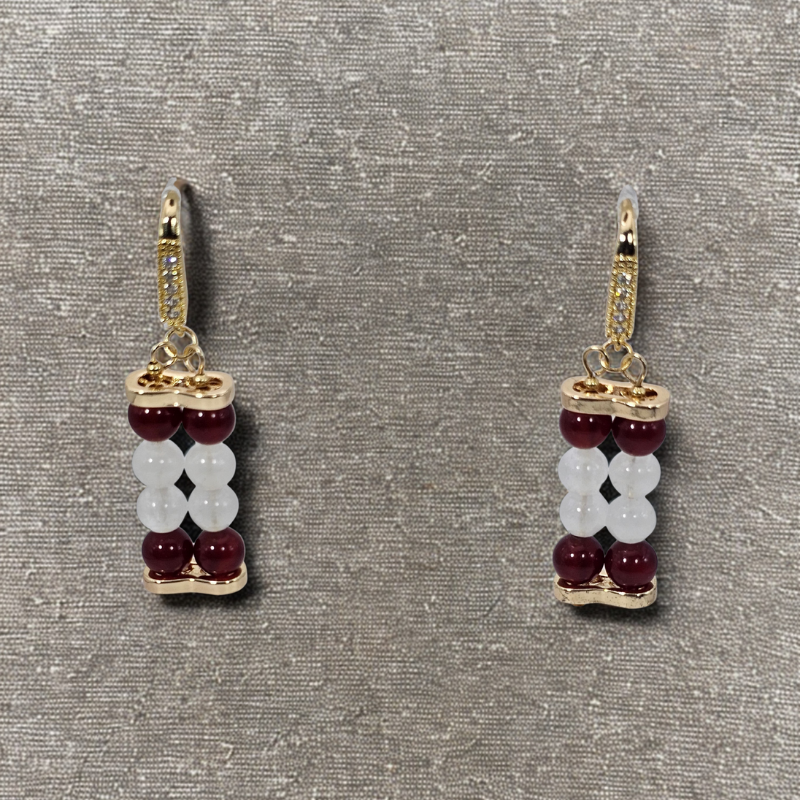 Carnelian & White Jade 6mm Dangle Earrings- Gold