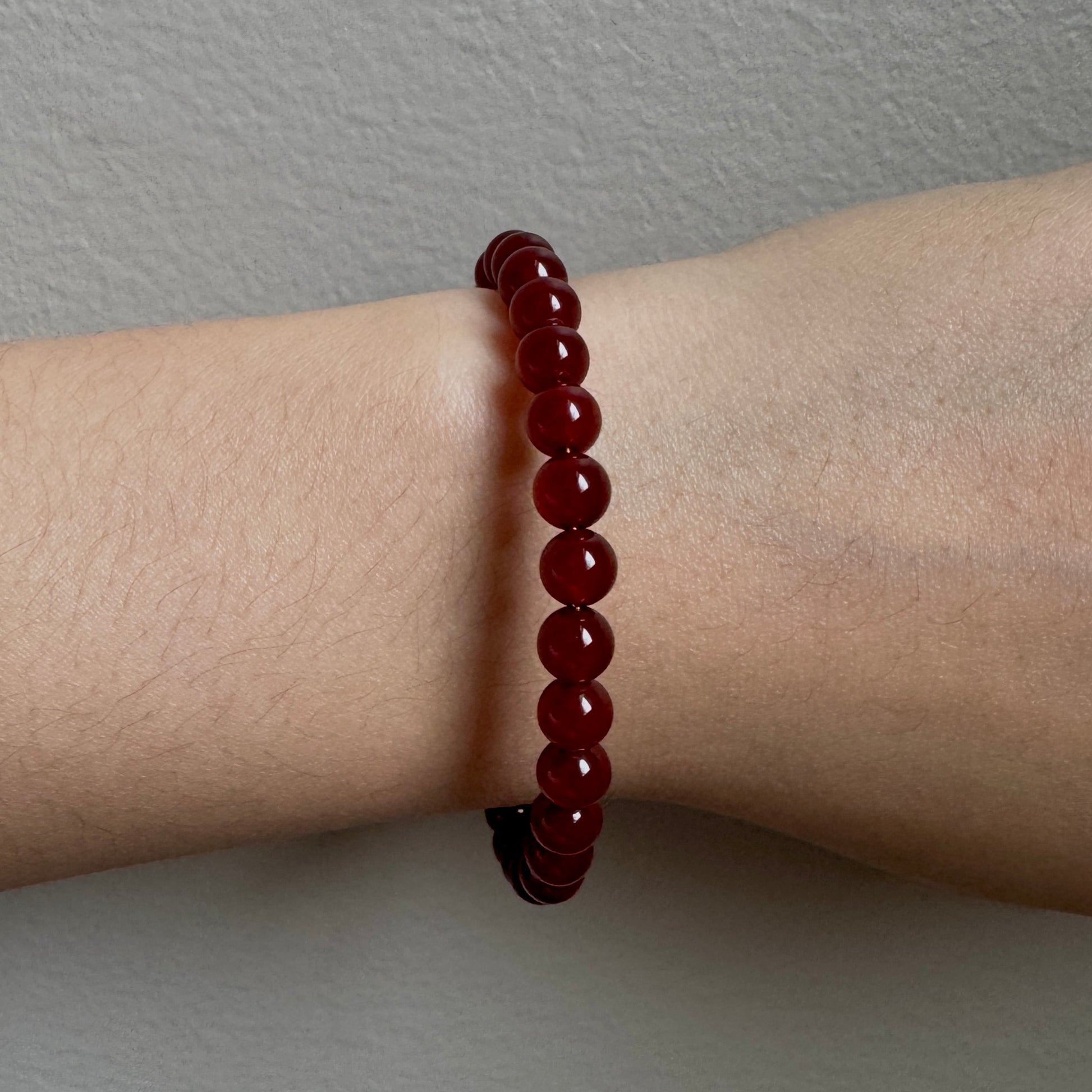 Ignite passion and motivation with dJems' Carnelian Bracelet. Featuring 6mm natural carnelian beads on plated stainless steel memory wire with a fixed safety chain, this bracelet symbolizes courage, creativity, and drive. A bold accessory for inspired living.