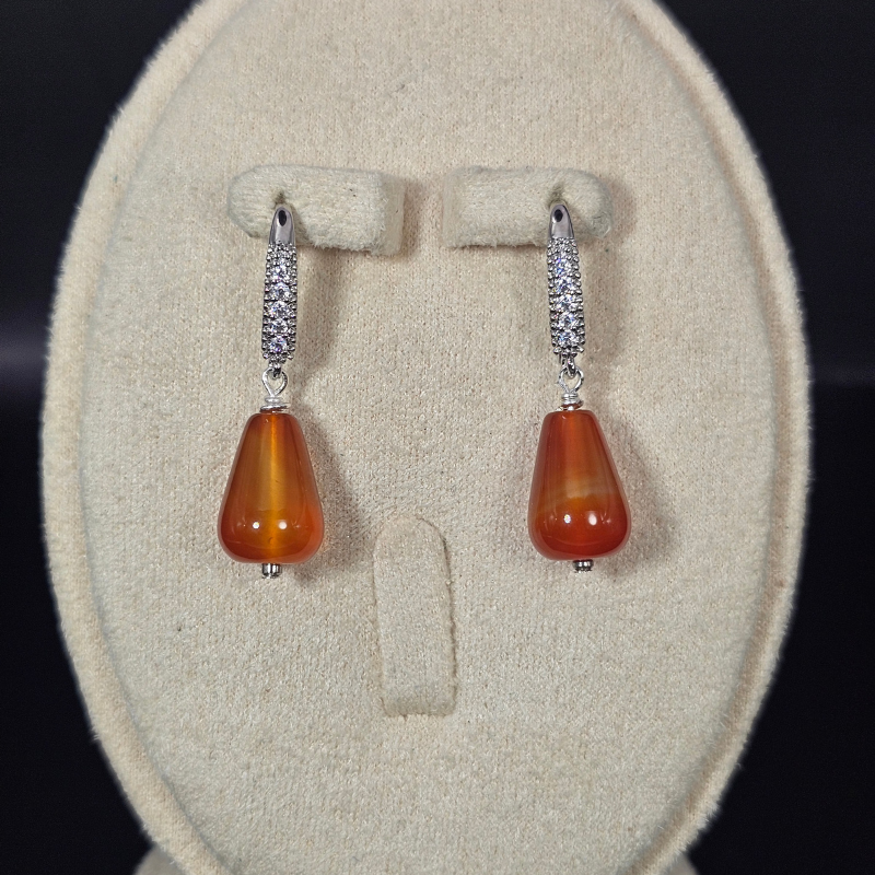 Featuring 6mm Red Agate Carnelian beads, these dangle earrings are set on stainless steel ear wires. It is believed that Carnelian boosts confidence, vitality, and creativity — a timeless stone of energy and empowerment.
