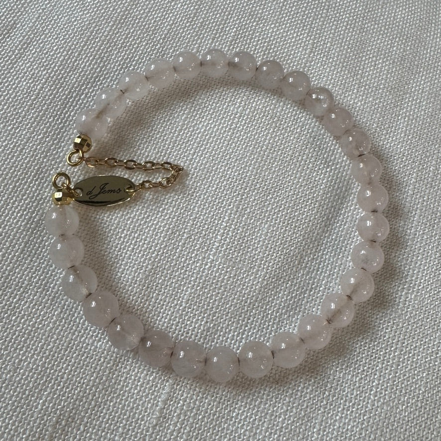 Invite love and harmony with dJems' Rose Quartz Bracelet. Featuring 6mm natural rose quartz beads on plated stainless steel memory wire with a fixed safety chain, this bracelet symbolizes compassion, self-love, and emotional healing. A delicate and meaningful touch for any occasion.