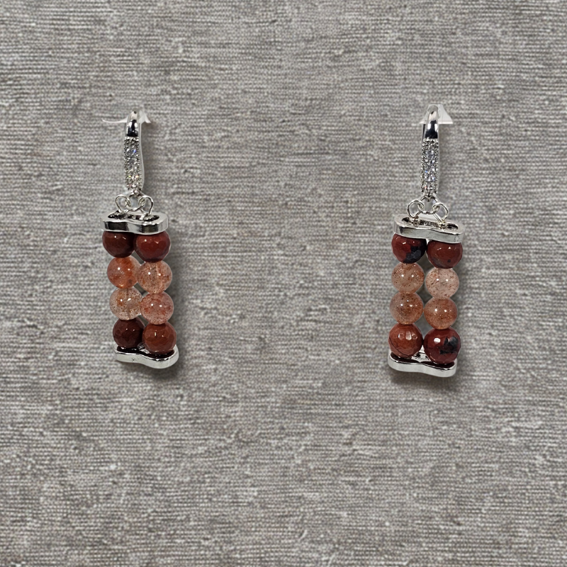 Featuring 6mm Sunstone and Red Jasper Agate beads, these earrings are secured with stainless steel ear wires. It is believed that Sunstone radiates joy and optimism, while Red Jasper Agate provides grounding and stability.