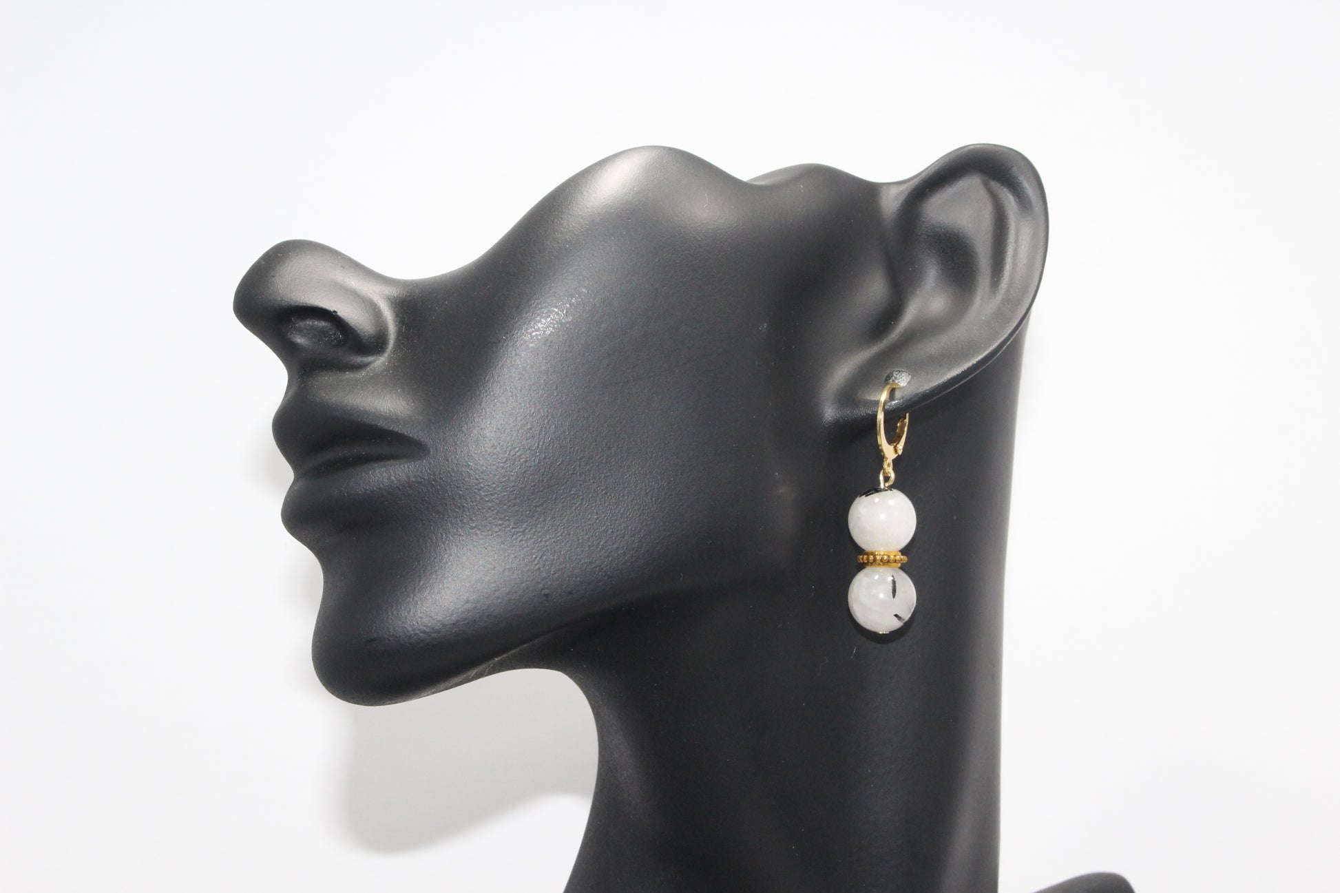These earrings combine the clear and dark tones in tourmalated quartz beautifully. The gold accent adds warmth and polish. They elevate even my simple outfits.