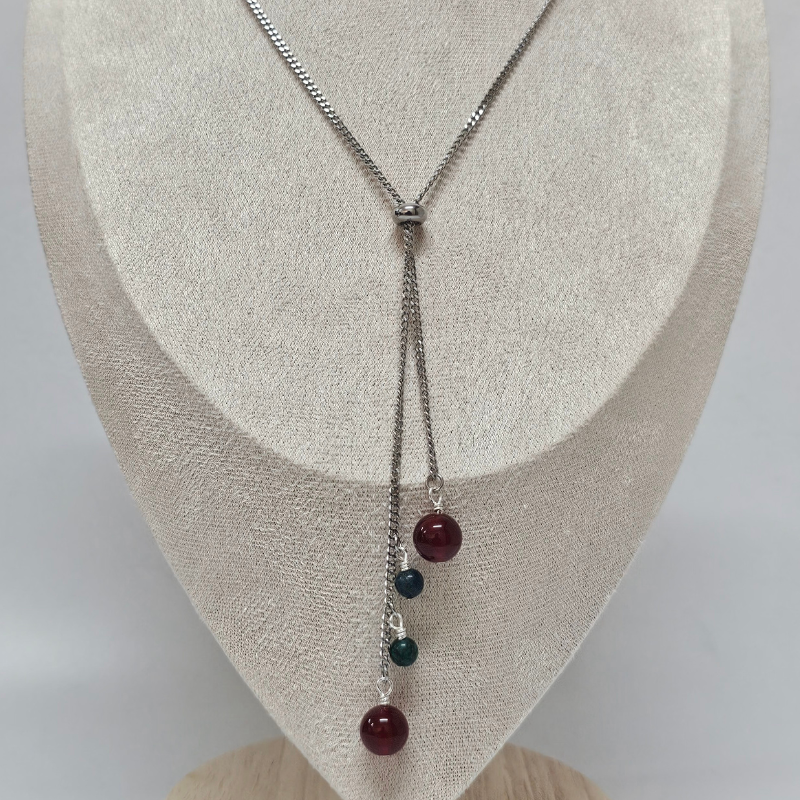 Crafted with fiery Carnelian and deep Azurite beads, this Athena Necklace captures contrast and beauty. It is believed that Carnelian sparks vitality and passion, while Azurite enhances intuition and clarity — energy paired with insight.