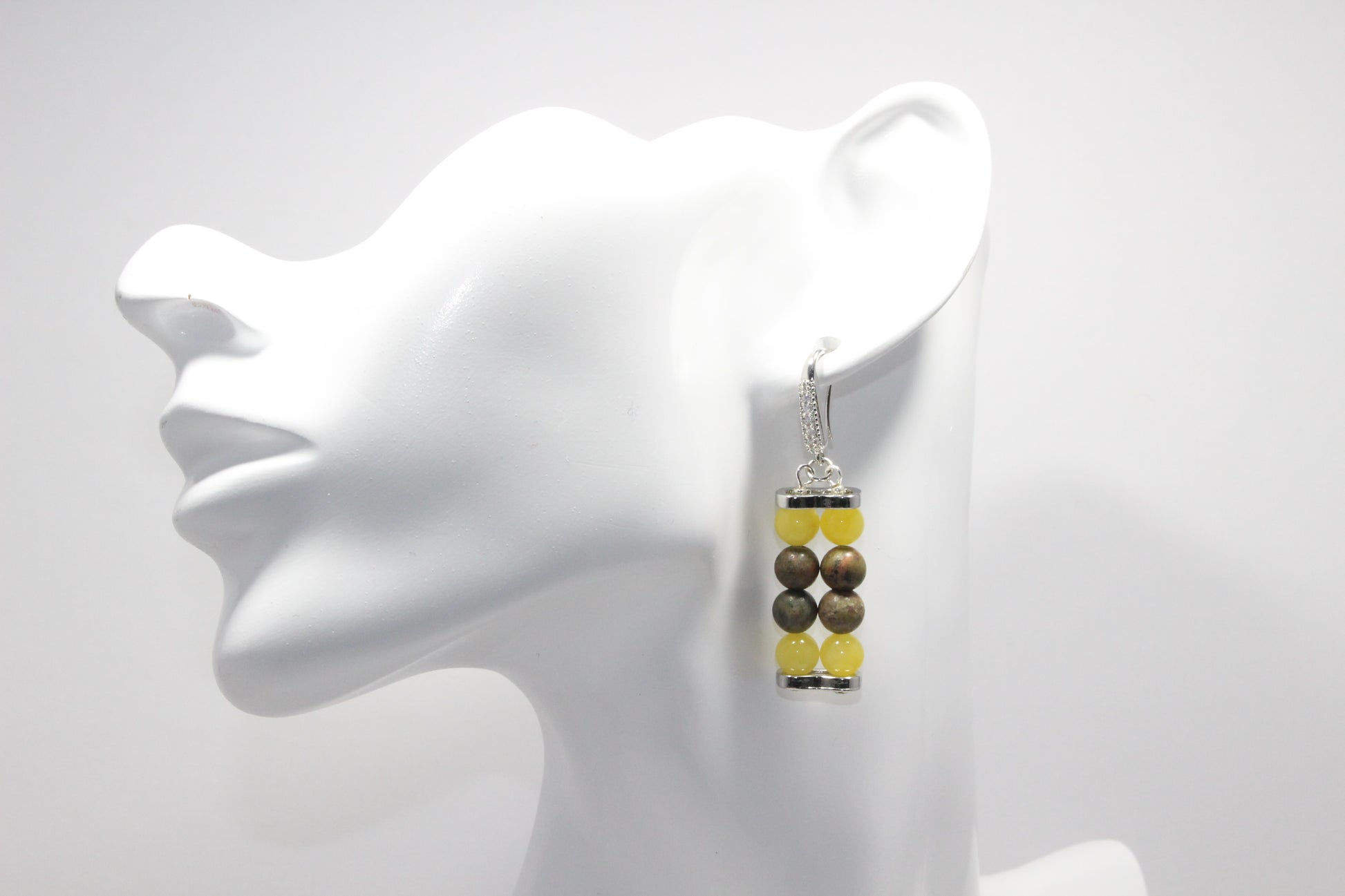 Unakite & Yellow Angelite 6mm Dangle Earrings - Silver